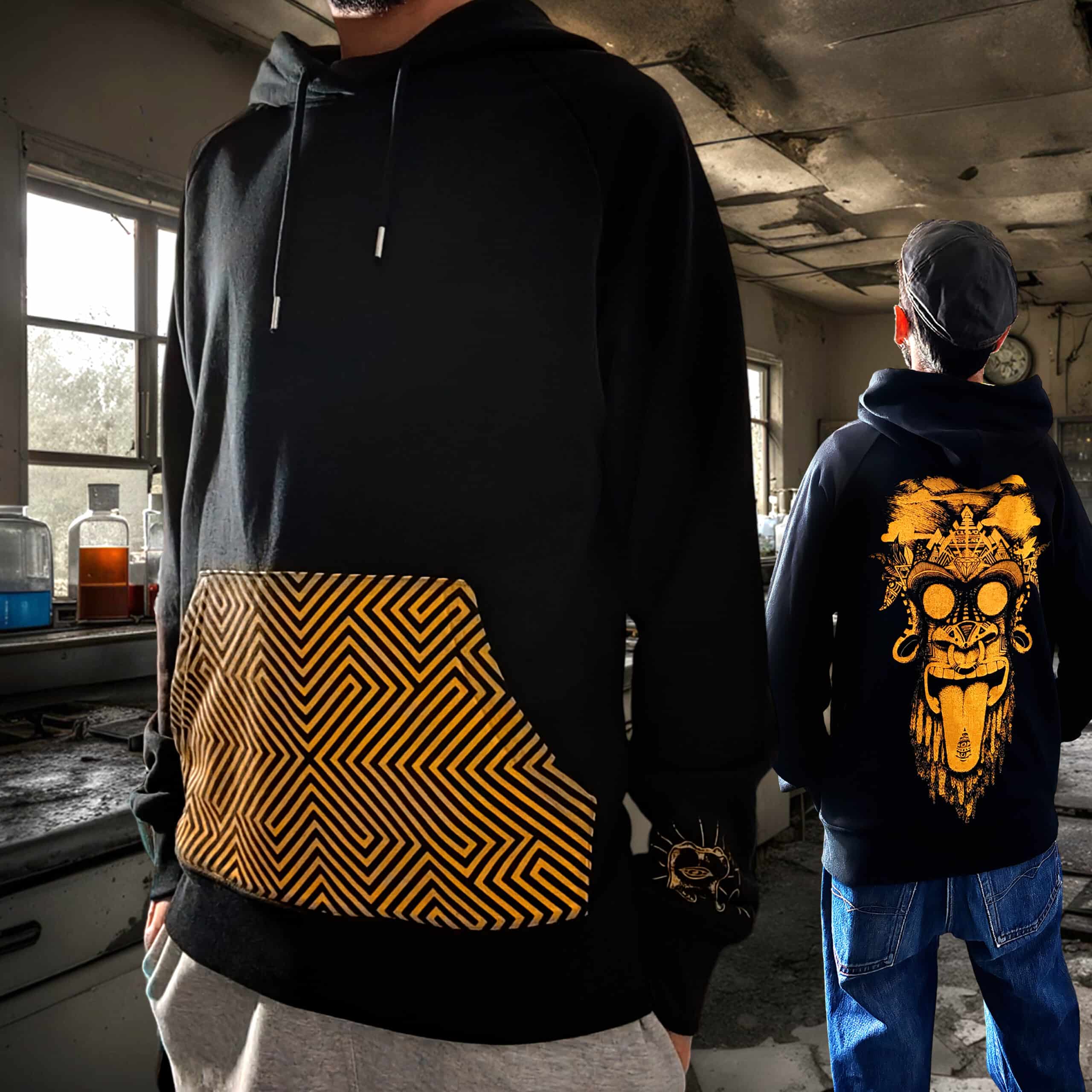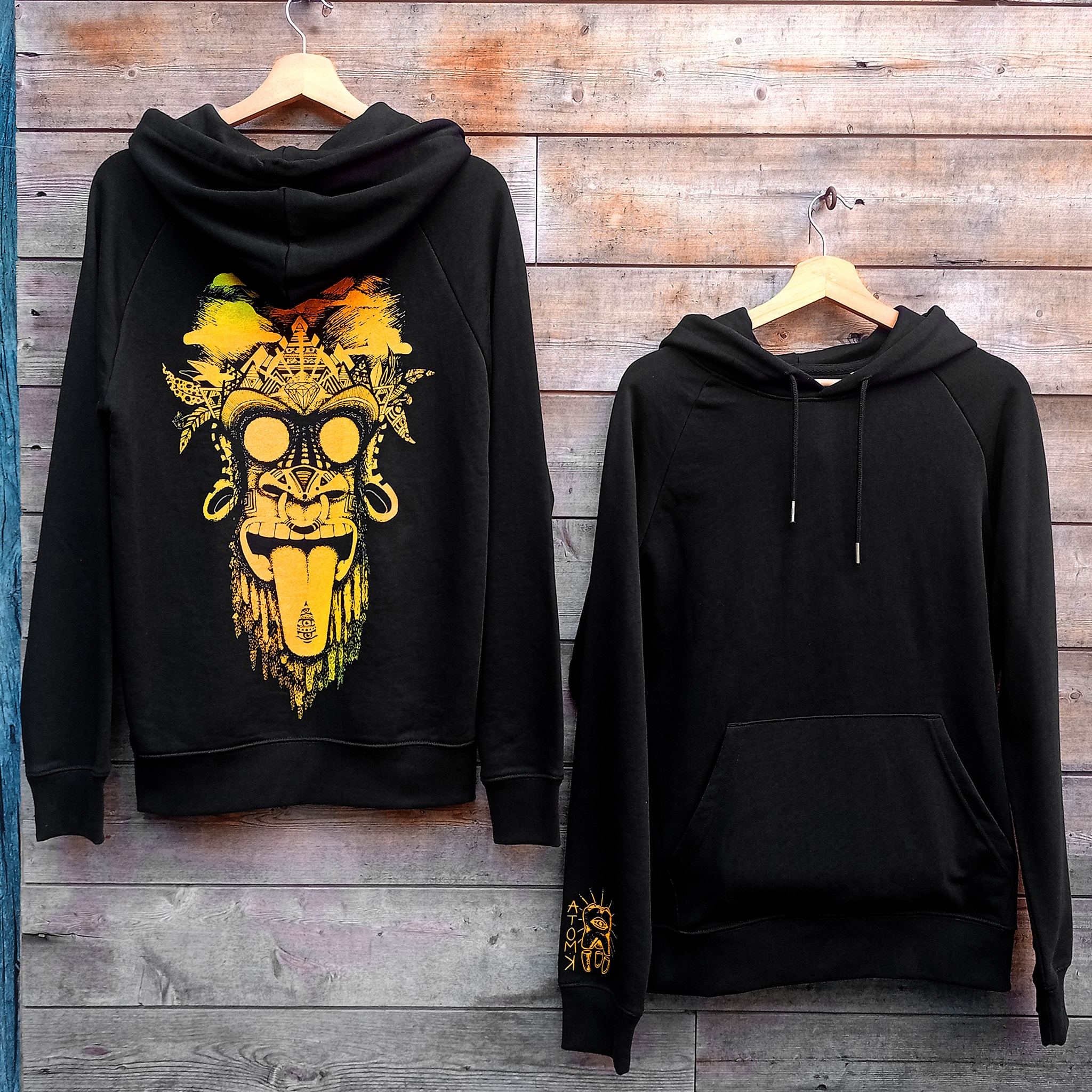 sweat noir | singe jaune | poche sérigraphiée